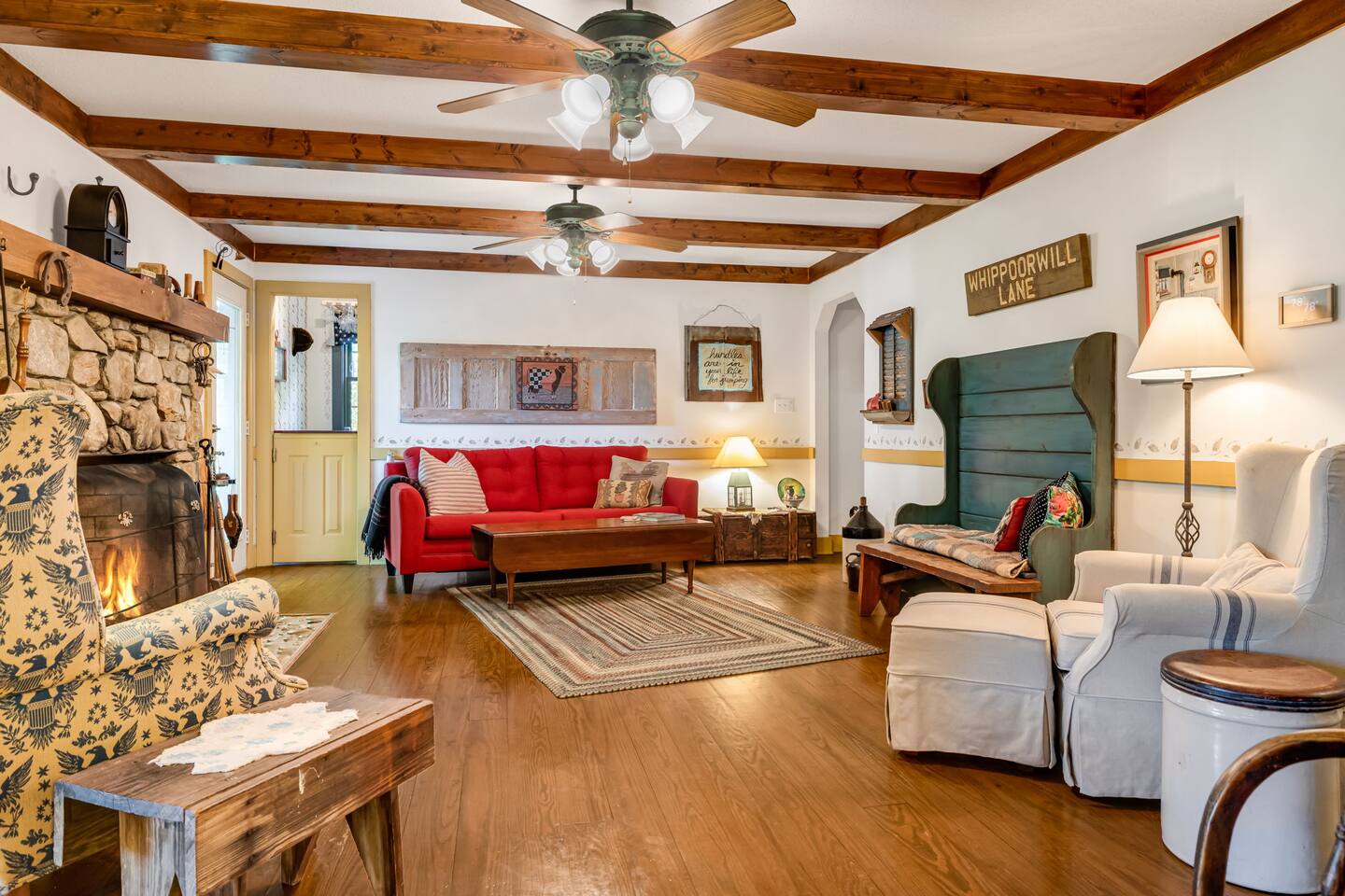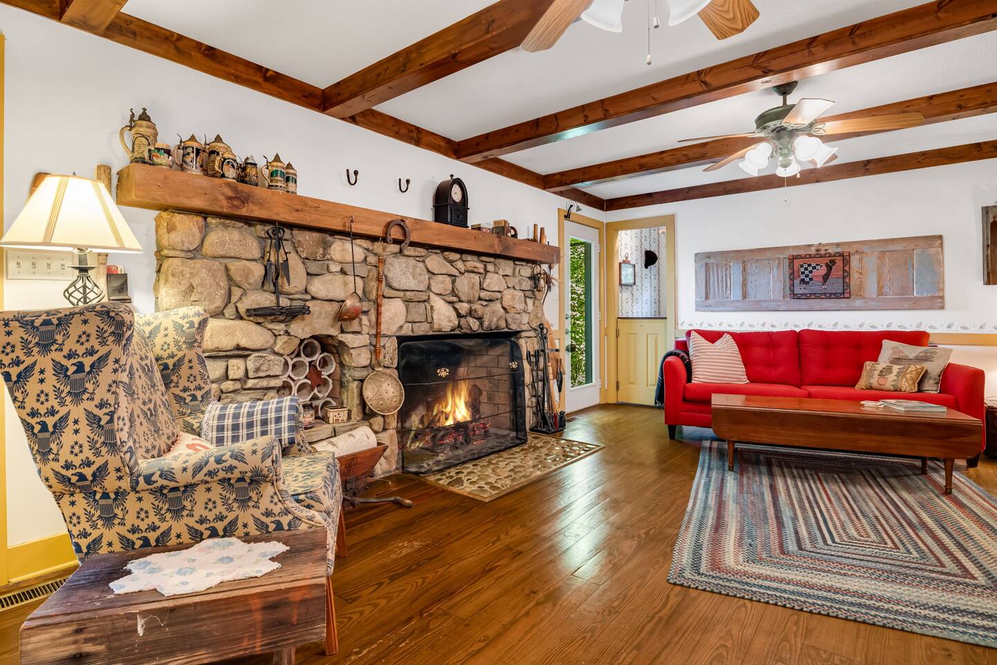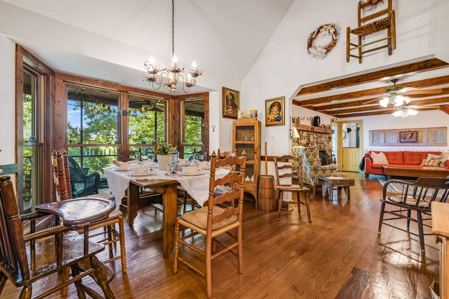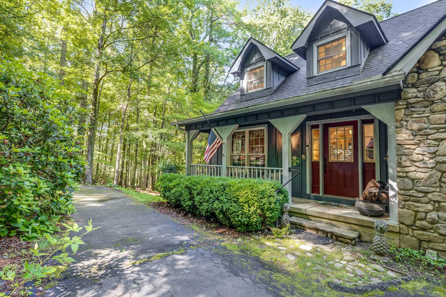 Inside, you’ll find: 4 inviting bedrooms with cozy quilts and vintage touches. The layout includes a full bed in the finished basement, another on the main floor, a third full bed in a smaller upstairs room, and a spacious upstairs primary bedroom with a king bed. 3.5 bathrooms, including a clawfoot tub and dual vanities A wood-beamed living room with a large stone fireplace and comfy seating A fully equipped country kitchen with everything needed to cook and serve A beautiful dining room with forest views perfect for gathering A grand piano for music lovers and a touch of timeless elegance Washer and dryer for your convenience Outside, enjoy: A screened-in porch and a separate open-air deck for coffee or cocktails A covered front porch with rockers and a forest view A fire pit with Adirondack chairs under the trees A propane grill and outdoor dining area for cookouts A spacious backyard with hammocks, perfect for kids or relaxing afternoons Whether you’re hiking the nearby trails, chasing waterfalls, exploring local shops and wineries, or heading to Asheville for dining and culture, this peaceful retreat offers the best of both worlds: quiet seclusion and easy access to adventure—with the airport just a short drive away. PLEASE READ THOROUGHLY We have partnered with Truvi to protect our properties. You will be required to go through a verification process after confirming your booking. You will also be given the choice between paying a refundable deposit ($500) or buying a non-refundable damage waiver ($50) through Truvi. We suggest you buy the damage waiver as this protects you in case you cause accidental damage during a booking.