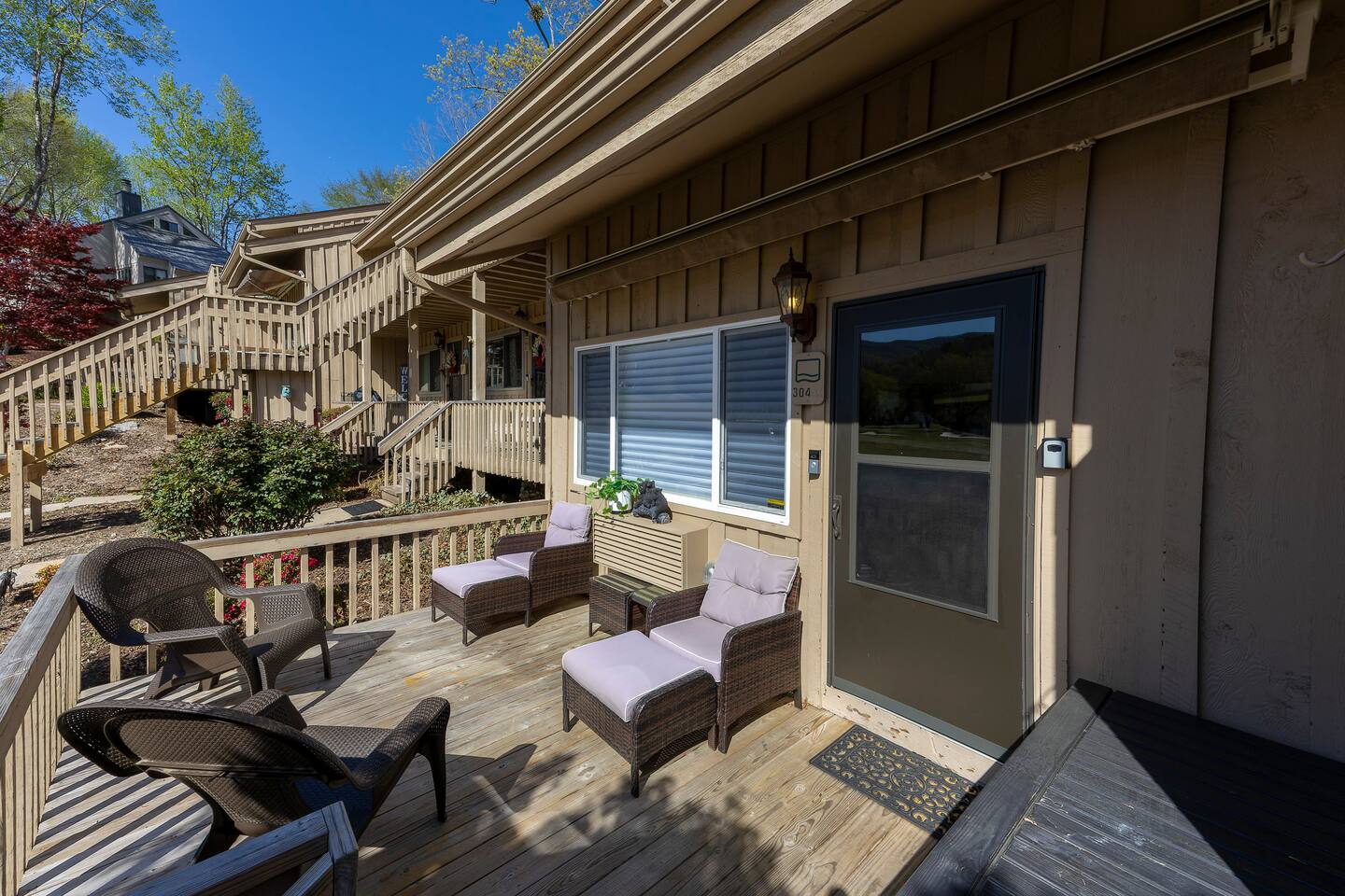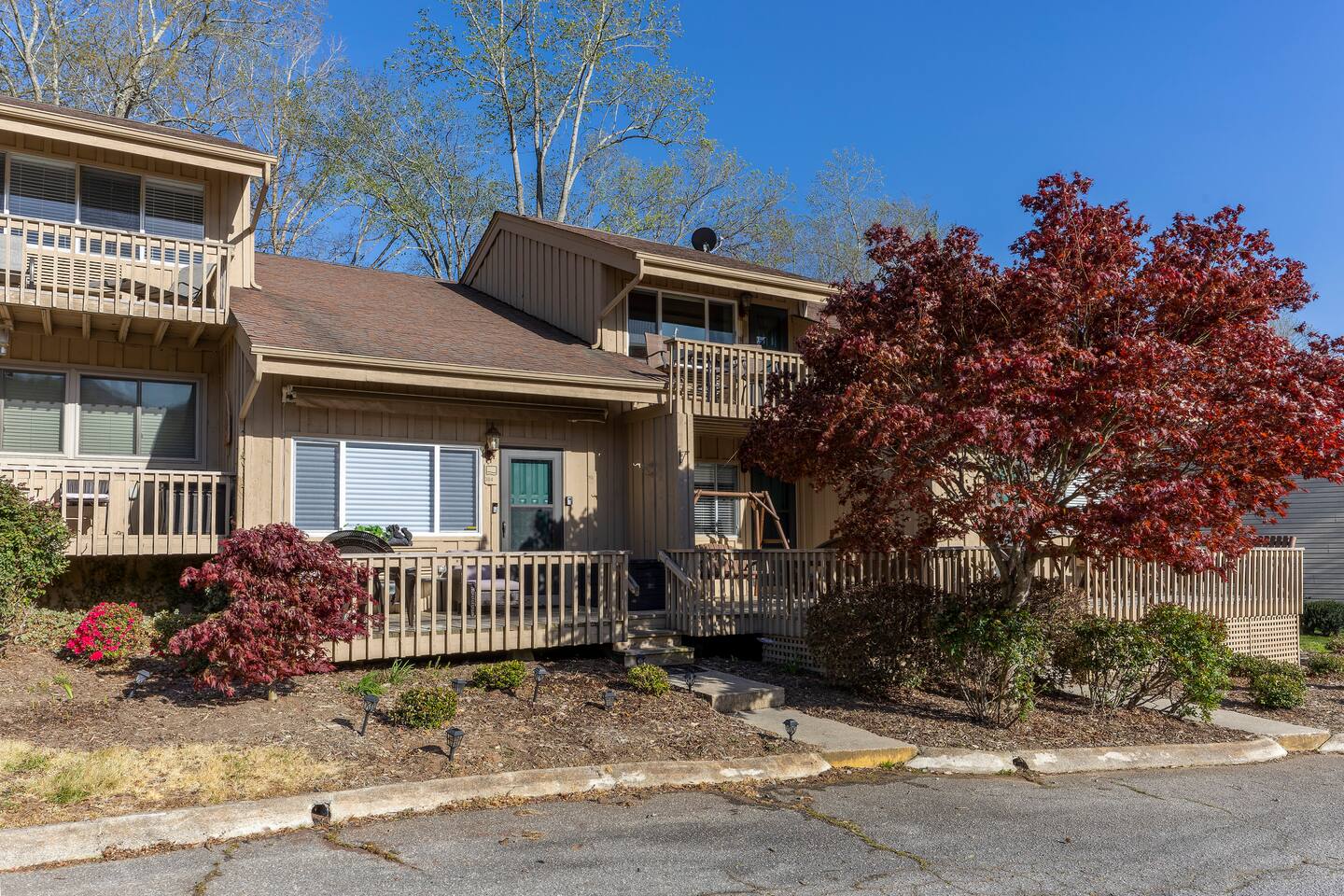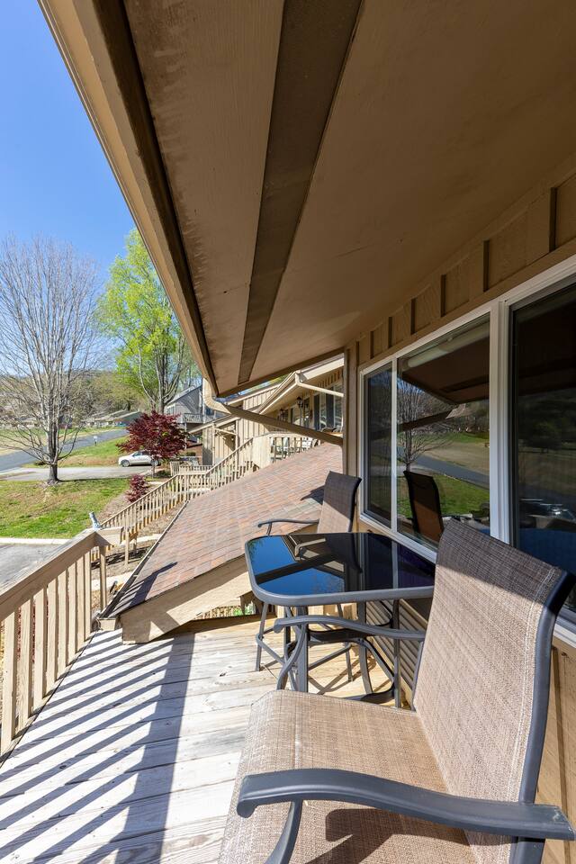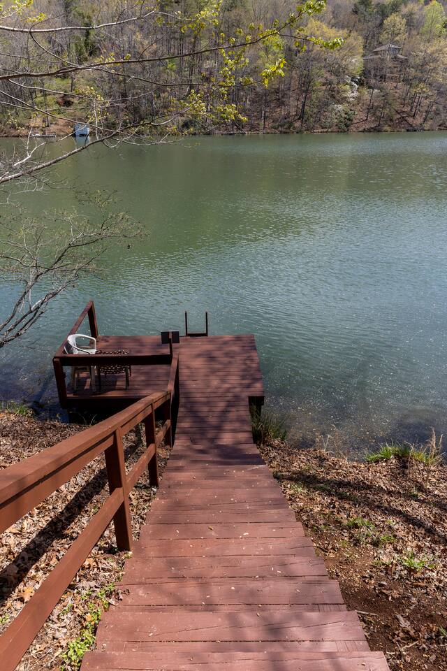 KEY FEATURES: ☀ 2 bedrooms; 1 king, 2 fulls, 1 couch; comfortably sleeps up to 6 guests ☀ 2 full bathrooms, 1 half bathroom; complimentary toiletries ☀ Full kitchen ☀ Free wifi + Smart TVs ☀ 2nd, 3rd, & 7th Hole view of Bald Mountain Golf Course ☀ View of Bald Mountain from front & Bald Mountain Lake in back ☀ Washer + dryer ☀ Private screened in back porch, spacious front porch, & decks off each bedroom ☀ Complimentary Rumbling Bald community access to community outdoor pools, indoor heated pool, sauna, gym, tennis courts, pickleball courts, basketball court, mini-golf, lakefront beach + more! ☀ Private entrance ☀ Free parking for up to 2 vehicles Play golf, watch a movie while curling up in front of the fire, or wake up early to fish in Bald Mountain Lake right out back of the condo. Take advantage of the many amenities Rumbling Bald has to offer. There is something for everyone! ☆☆ BEDROOMS ☆☆ A perfect vacation isn’t complete without a comfy place to sleep. The two bedrooms with private decks are the perfect place to relax after a long day on the lake. Each bedroom contains plush beds with hotel quality linens and plenty of pillows. The spacious primary bedroom is located on the second floor and features a luxurious king-sized bed, two nightstands, a ceiling fan, one dresser, smart TV, a makeup vanity, and a closet with plenty of room to store your belongings, as well as an ensuite full bathroom with a shower/bath combo and large vanity. The deck just outside the door in the primary bedroom has a beautiful view of the golf course. The second bedroom is just on the other side of the second floor. It has two comfy full beds, a dresser, smart TV, and one nightstand. The deck off the back of the room has a swing where you can relax and take in the beautiful Bald Mountain Lake. ☆☆ BATHROOMS ☆☆ Get ready in one of the two full bathrooms. Both full baths include a shower/bathtub combination so you can choose between a relaxing soak or a refreshing rinse. All bathrooms are stocked with fresh towels, shampoo, conditioner, body wash, and hand soap. A hairdryer can be found in the ensuite bathroom in the primary bedroom. For your laundry needs, you’ll find a washer and dryer tucked into a discreet closet on the main floor. Proximity to the sandy lake beach and the ability to keep your clothes fresh makes this a great place for a long stay! ☆☆ KITCHEN & LIVING ROOM ☆☆ Make all your meals in the fully-equipped kitchen. This large open space features all the appliances, cookware, utensils, and dishes you’ll need to make and serve tasty creations for your whole group. Stay energized during your stay with the Keurig coffee machine and stocked coffee bar. When you’re ready to eat, head into the open-concept dining room, where you’ll find a large dining table. With additional seating on the deck, everyone is sure to find space around the table. You’ll love playing a few rounds of cards or one of the many board games stored we’ve provided for you. The plush living room is the perfect place to relax with your whole group. Sit back on the comfortable sofa or one of the two armchairs for some fire-side chats or watch your favorite shows on the large smart TV. You can enjoy uninterrupted streaming using high-speed wifi. No matter what the occasion, you’ll find plenty of space for the entire family or group of friends. ☆☆ OUTSIDE SPACE ☆☆ Step out onto the front deck and enjoy some fresh air while watching golfers start their round on the 2nd & 3rd holes of Bald Mountain Gold Course. There’s plenty of space on the back screened in deck as well where you’ll have terrific views of the peaceful Bald Mountain lake. The best part about staying at Bald Mountain Lake Escape is the easy access to Lake Lure beach and complimentary Rumbling Bald community access gives your family so many options for activities during your stay. From tennis, pickleball, basketball, and mini-golf to the lazy river at the large outdoor pool, you’ll never be bored. Don’t forget the two golf courses (Apple Valley and Bald Mountain), hiking, mountain biking, fishing, boating, paddle boarding, kayaking, and so much more just minutes away. There’s more than enough to excite even the most adventurous outdoor enthusiast. This beautiful house is ideally located near many attractions and great restaurants so you can make the most out of your stay in Lake Lure. ★☆ Book Today & Let Us Take Care Of You In Lake Lure! ☆★ Guest Access: Enjoy access to the entire house, except for the locked owner’s closet. Make use of the full kitchen, laundry machine, Smart TVs, patio furniture, and more. You can also enjoy all the amenities that the community has to offer, including the two outdoor pools & lazy river (open during the summer season), gym, sauna, indoor heated pool (open year-round), basketball courts, tennis/pickleball courts, a mini-golf course, playground, and beach access. Free parking is available in the marked parking spots for up to two cars. Self-check-in is a breeze using the Smart lock. Lock instructions will be provided the day before check-in. The minimum age to rent this unit is 25 years old. Absolutely no smoking is permitted inside the property. No parties allowed. No pets allowed. A car is a must in Lake Lure but there is plenty to do close by. Chimney Rock offers the best view of the lake and is only 25 minutes away. Asheville is less than an hour drive. There you can explore tons of restaurants and breweries as well as visit the famous Biltmore Estates. The Asheville Regional Airport is a one hour drive and Greenville-Spartanburg International Airport is just over an hour drive. Play golf, watch a movie while curling up in front of the fire, or wake up early to fish in Bald Mountain Lake right out back of the condo. Take advantage of the many amenities Rumbling Bald has to offer. There is something for everyone! PLEASE READ THOROUGHLY We have pa