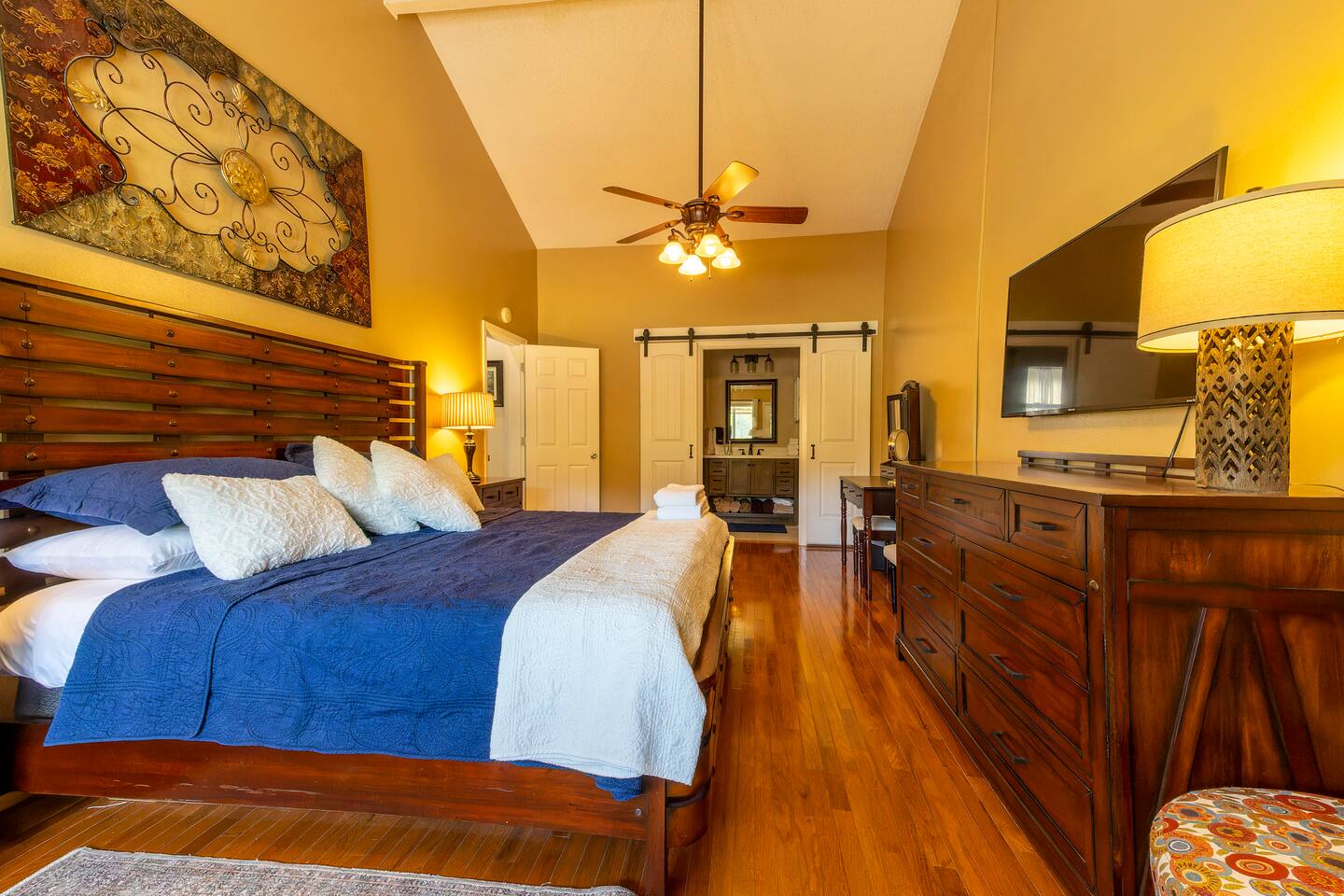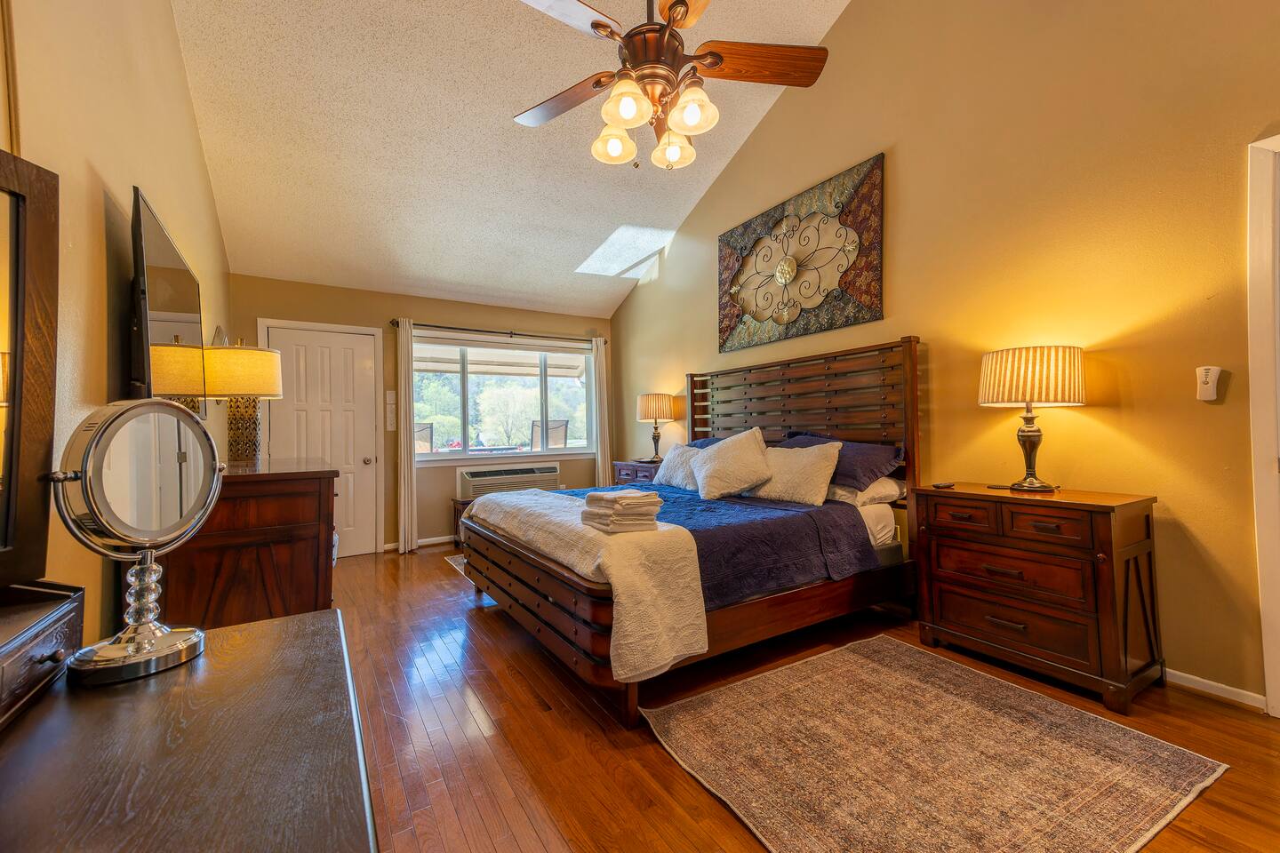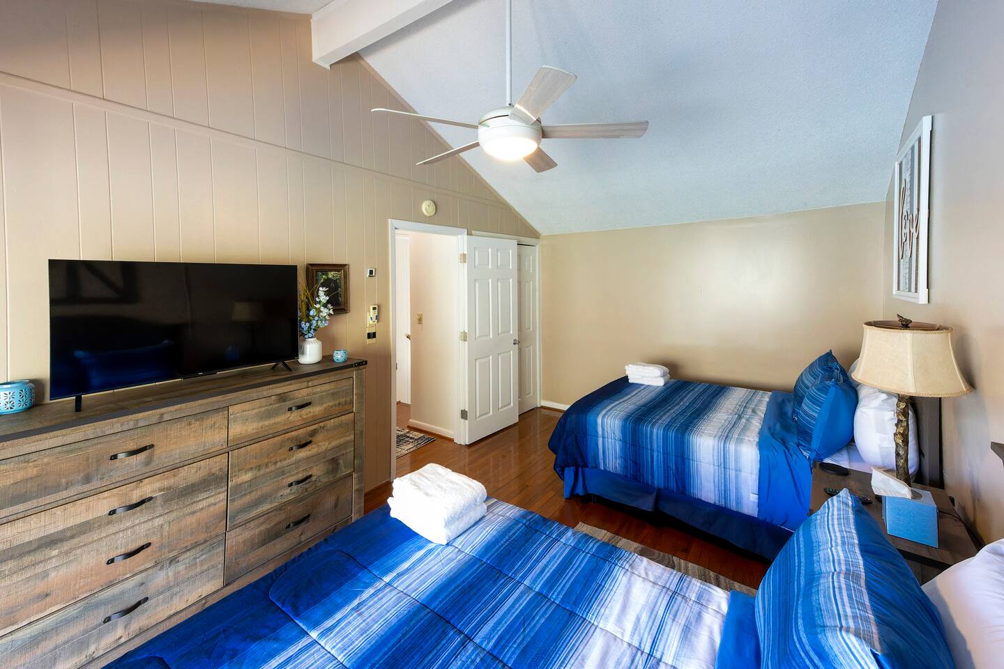 KEY FEATURES: ☀ 2 bedrooms; 1 king, 2 fulls, 1 couch; comfortably sleeps up to 6 guests ☀ 2 full bathrooms, 1 half bathroom; complimentary toiletries ☀ Full kitchen ☀ Free wifi + Smart TVs ☀ 2nd, 3rd, & 7th Hole view of Bald Mountain Golf Course ☀ View of Bald Mountain from front & Bald Mountain Lake in back ☀ Washer + dryer ☀ Private screened in back porch, spacious front porch, & decks off each bedroom ☀ Complimentary Rumbling Bald community access to community outdoor pools, indoor heated pool, sauna, gym, tennis courts, pickleball courts, basketball court, mini-golf, lakefront beach + more! ☀ Private entrance ☀ Free parking for up to 2 vehicles Play golf, watch a movie while curling up in front of the fire, or wake up early to fish in Bald Mountain Lake right out back of the condo. Take advantage of the many amenities Rumbling Bald has to offer. There is something for everyone! ☆☆ BEDROOMS ☆☆ A perfect vacation isn’t complete without a comfy place to sleep. The two bedrooms with private decks are the perfect place to relax after a long day on the lake. Each bedroom contains plush beds with hotel quality linens and plenty of pillows. The spacious primary bedroom is located on the second floor and features a luxurious king-sized bed, two nightstands, a ceiling fan, one dresser, smart TV, a makeup vanity, and a closet with plenty of room to store your belongings, as well as an ensuite full bathroom with a shower/bath combo and large vanity. The deck just outside the door in the primary bedroom has a beautiful view of the golf course. The second bedroom is just on the other side of the second floor. It has two comfy full beds, a dresser, smart TV, and one nightstand. The deck off the back of the room has a swing where you can relax and take in the beautiful Bald Mountain Lake. ☆☆ BATHROOMS ☆☆ Get ready in one of the two full bathrooms. Both full baths include a shower/bathtub combination so you can choose between a relaxing soak or a refreshing rinse. All bathrooms are stocked with fresh towels, shampoo, conditioner, body wash, and hand soap. A hairdryer can be found in the ensuite bathroom in the primary bedroom. For your laundry needs, you’ll find a washer and dryer tucked into a discreet closet on the main floor. Proximity to the sandy lake beach and the ability to keep your clothes fresh makes this a great place for a long stay! ☆☆ KITCHEN & LIVING ROOM ☆☆ Make all your meals in the fully-equipped kitchen. This large open space features all the appliances, cookware, utensils, and dishes you’ll need to make and serve tasty creations for your whole group. Stay energized during your stay with the Keurig coffee machine and stocked coffee bar. When you’re ready to eat, head into the open-concept dining room, where you’ll find a large dining table. With additional seating on the deck, everyone is sure to find space around the table. You’ll love playing a few rounds of cards or one of the many board games stored we’ve provided for you. The plush living room is the perfect place to relax with your whole group. Sit back on the comfortable sofa or one of the two armchairs for some fire-side chats or watch your favorite shows on the large smart TV. You can enjoy uninterrupted streaming using high-speed wifi. No matter what the occasion, you’ll find plenty of space for the entire family or group of friends. ☆☆ OUTSIDE SPACE ☆☆ Step out onto the front deck and enjoy some fresh air while watching golfers start their round on the 2nd & 3rd holes of Bald Mountain Gold Course. There’s plenty of space on the back screened in deck as well where you’ll have terrific views of the peaceful Bald Mountain lake. The best part about staying at Bald Mountain Lake Escape is the easy access to Lake Lure beach and complimentary Rumbling Bald community access gives your family so many options for activities during your stay. From tennis, pickleball, basketball, and mini-golf to the lazy river at the large outdoor pool, you’ll never be bored. Don’t forget the two golf courses (Apple Valley and Bald Mountain), hiking, mountain biking, fishing, boating, paddle boarding, kayaking, and so much more just minutes away. There’s more than enough to excite even the most adventurous outdoor enthusiast. This beautiful house is ideally located near many attractions and great restaurants so you can make the most out of your stay in Lake Lure. ★☆ Book Today & Let Us Take Care Of You In Lake Lure! ☆★ Guest Access: Enjoy access to the entire house, except for the locked owner’s closet. Make use of the full kitchen, laundry machine, Smart TVs, patio furniture, and more. You can also enjoy all the amenities that the community has to offer, including the two outdoor pools & lazy river (open during the summer season), gym, sauna, indoor heated pool (open year-round), basketball courts, tennis/pickleball courts, a mini-golf course, playground, and beach access. Free parking is available in the marked parking spots for up to two cars. Self-check-in is a breeze using the Smart lock. Lock instructions will be provided the day before check-in. The minimum age to rent this unit is 25 years old. Absolutely no smoking is permitted inside the property. No parties allowed. No pets allowed. A car is a must in Lake Lure but there is plenty to do close by. Chimney Rock offers the best view of the lake and is only 25 minutes away. Asheville is less than an hour drive. There you can explore tons of restaurants and breweries as well as visit the famous Biltmore Estates. The Asheville Regional Airport is a one hour drive and Greenville-Spartanburg International Airport is just over an hour drive. Play golf, watch a movie while curling up in front of the fire, or wake up early to fish in Bald Mountain Lake right out back of the condo. Take advantage of the many amenities Rumbling Bald has to offer. There is something for everyone! PLEASE READ THOROUGHLY We have pa
