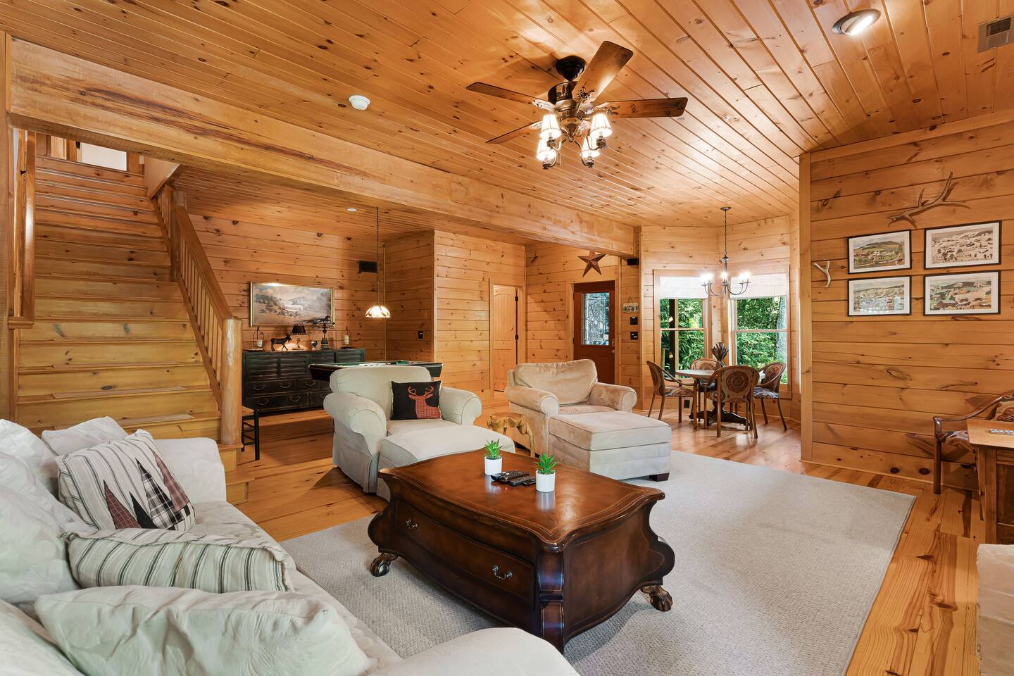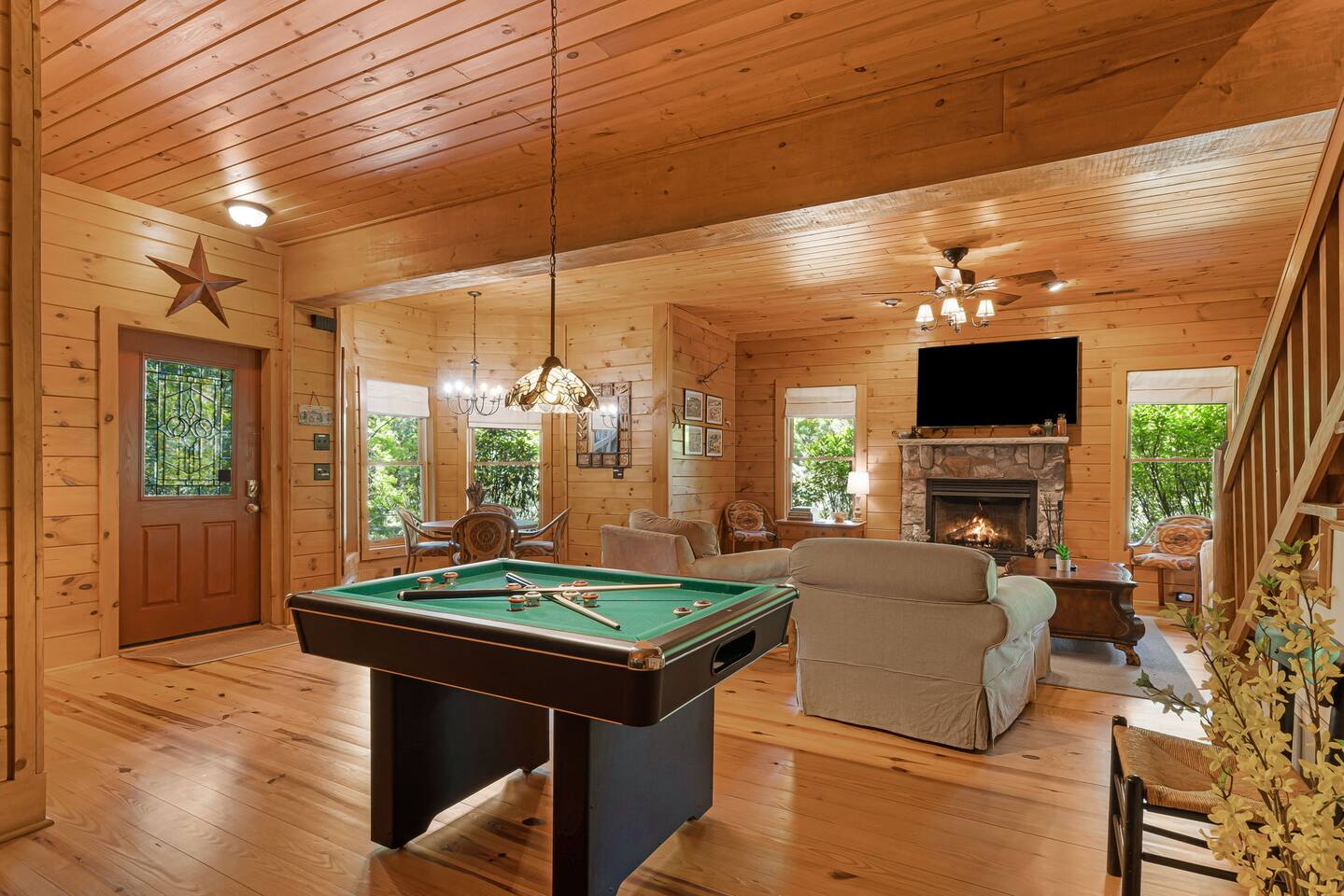 Welcome to Rocky Mountain Retreat! Escape to the serene beauty of Lake Lure with a stay at our charming Rocky Mountain Retreat, a cozy cabin offering the perfect blend of rustic charm and modern comfort for families, friends, or couples seeking tranquility amidst nature. This inviting retreat features three comfortable bedrooms, including a master with a king bed, a second bedroom with a queen bed, and a third bedroom with two twin beds, plus an additional queen sofa bed in the living area. With 2.5 bathrooms, a fully equipped kitchen, and a spacious dining area, you’ll have everything you need to enjoy a relaxing and convenient stay. The cabin is equipped with free Wi-Fi, a flat-screen TV with streaming services, central heating and air conditioning, a washer and dryer, and a cozy fireplace. The kitchen boasts all essential appliances and cookware, allowing you to prepare delicious meals, which you can enjoy in the large dining area that comfortably seats everyone. Step outside to the private deck and take in stunning mountain views, or make use of the outdoor grill and dining area for an al fresco experience. Guests have full access to the entire cabin, including all indoor and outdoor spaces, with easy check-in through our keyless entry system. Whether you’re seeking an adventure-filled vacation or a peaceful escape, Rocky Mountain Retreat is the perfect destination. Book your stay today and experience the best of Lake Lure in comfort and style. Hiking, mountain biking, and water sports at Lake Lure are all nearby, and it’s just a short drive to Chimney Rock, Asheville, and the Blue Ridge Parkway. PLEASE READ THOROUGHLY We have partnered with Truvi to protect our properties. You will be required to go through a verification process after confirming your booking. You will also be given the choice between paying a refundable deposit ($500) or buying a non-refundable damage waiver ($50) through Truvi. We suggest you buy the damage waiver as this protects you in case you cause accidental damage during a booking.