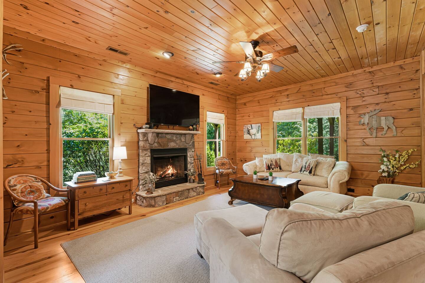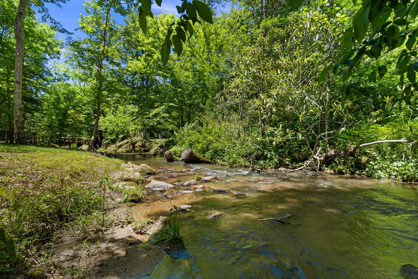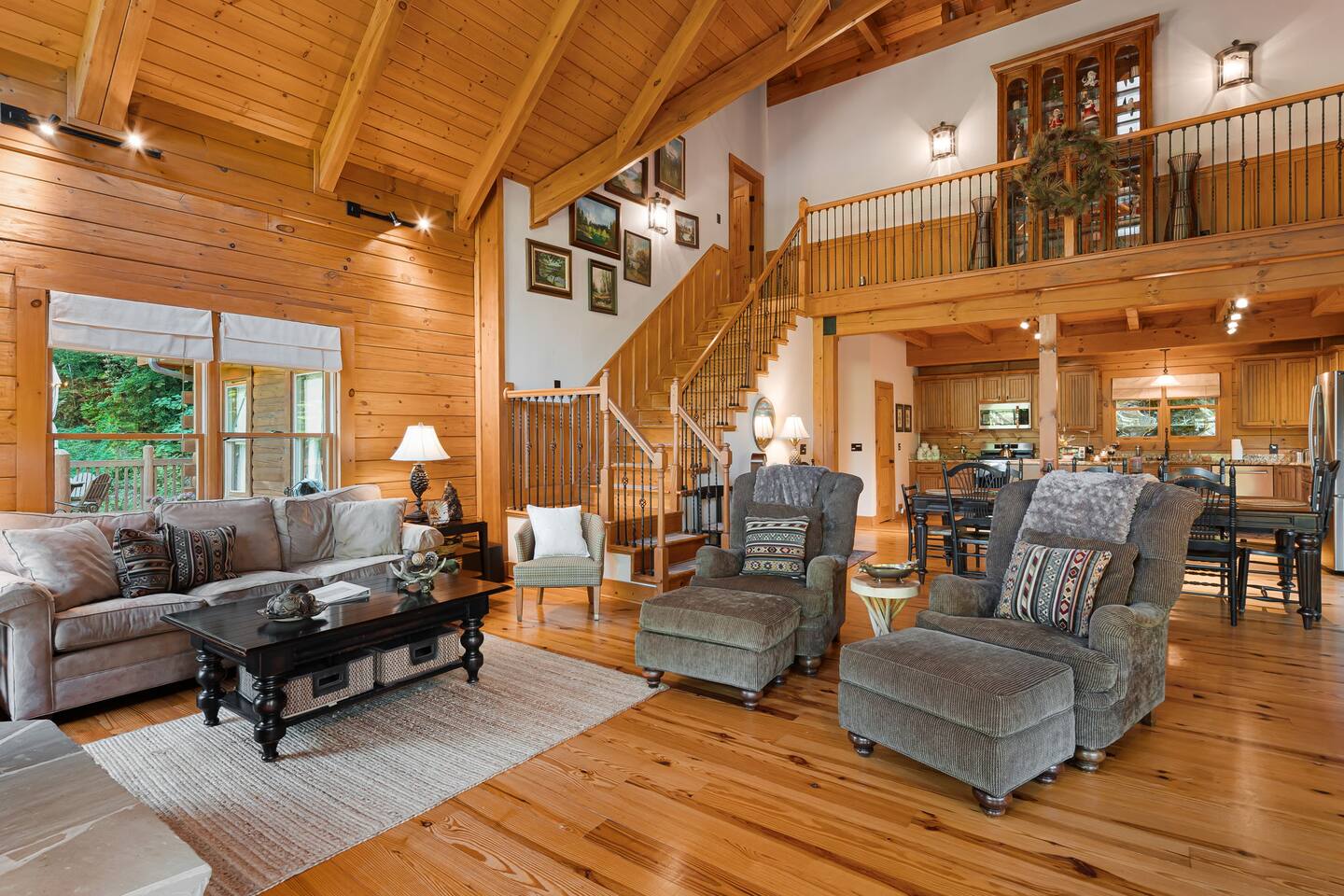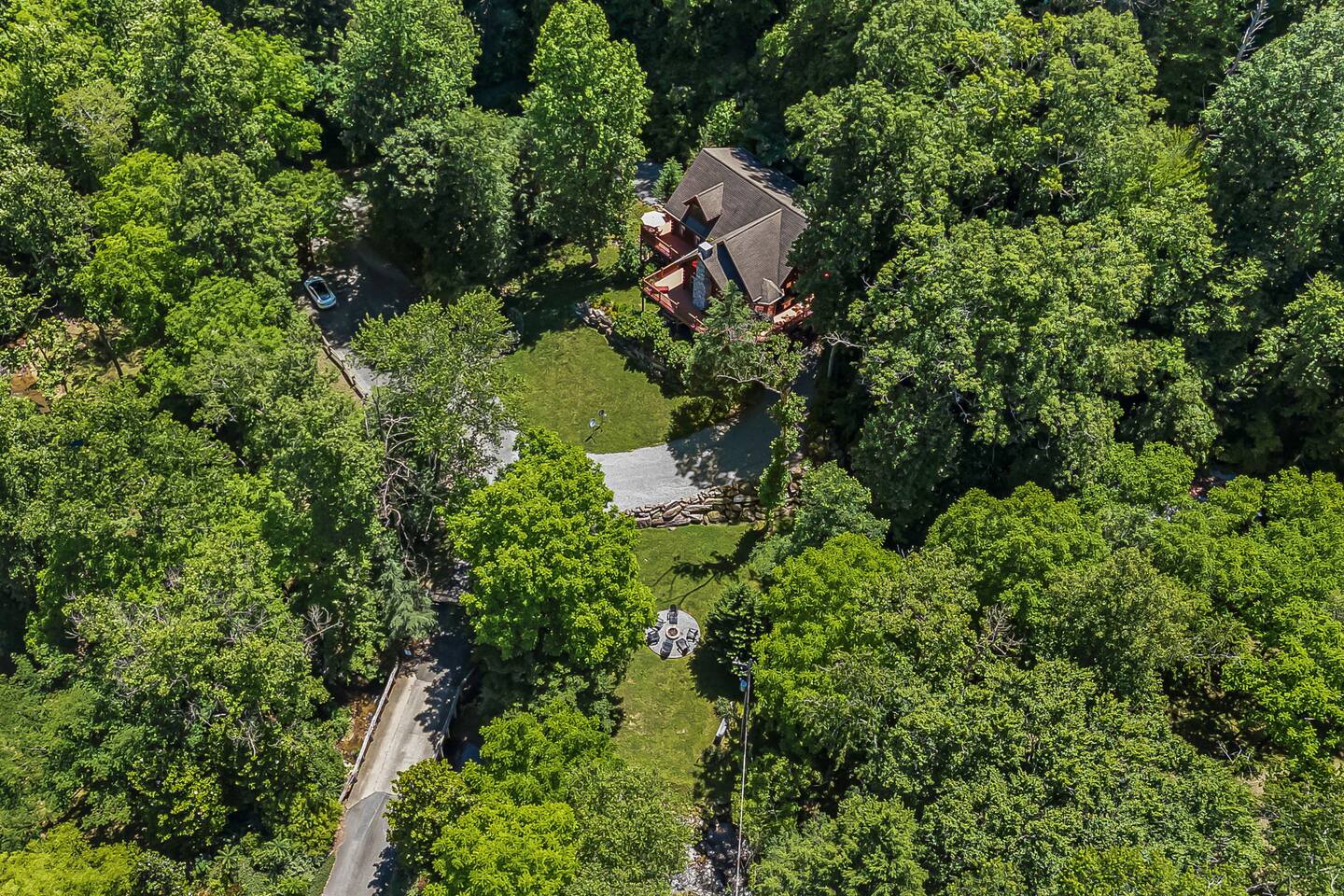 Your slice of Western North Carolina paradise awaits in this spacious, secluded log home, overlooking a creek and tucked into a quiet, gated community. Though you’ll feel a world away from it all, it’s less than five miles to several restaurants and two championship golf courses.