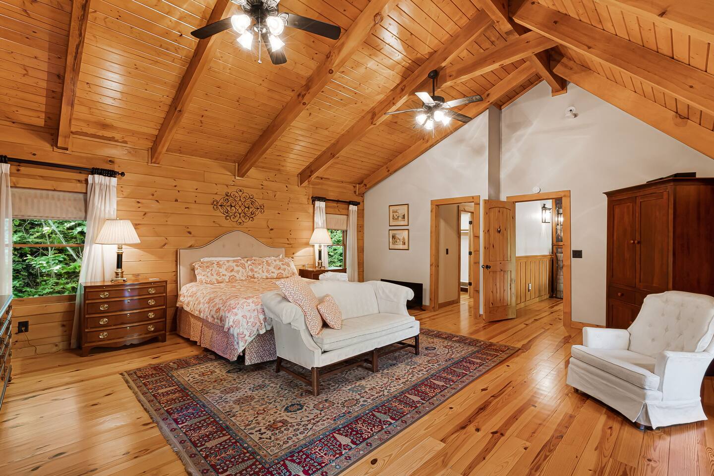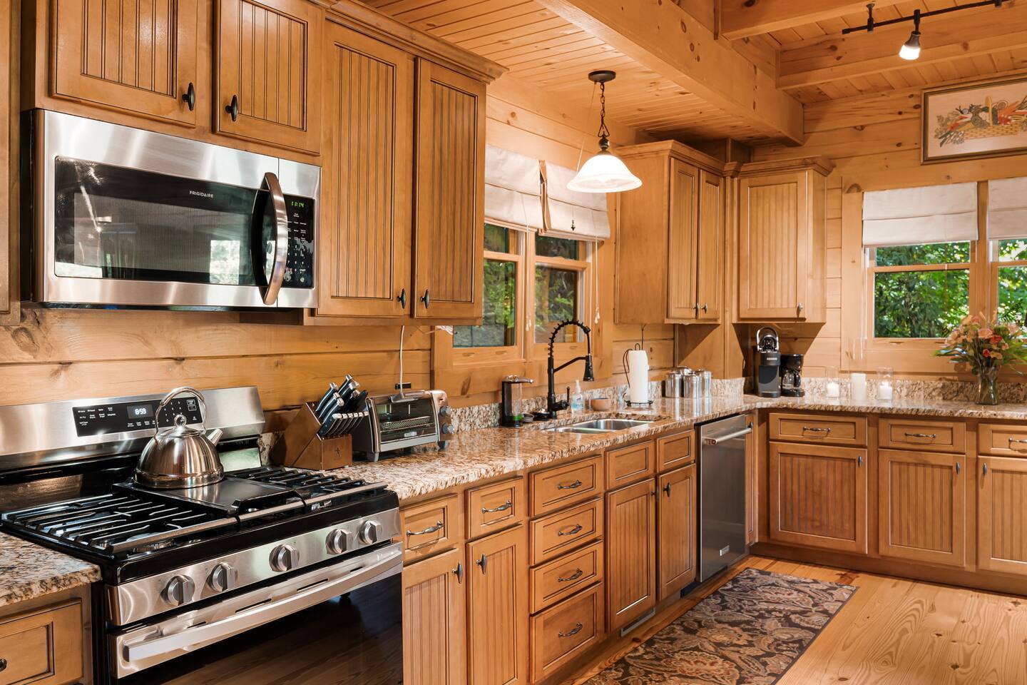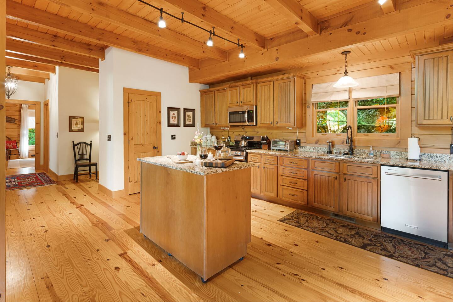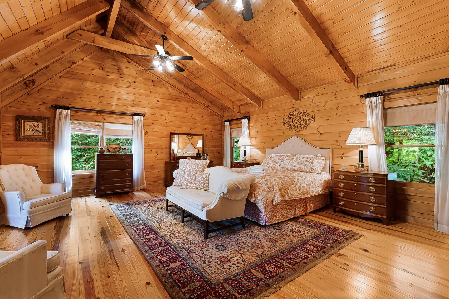 Your slice of Western North Carolina paradise awaits in this spacious, secluded log home, overlooking a creek and tucked into a quiet, gated community. Though you’ll feel a world away from it all, it’s less than five miles to several restaurants and two championship golf courses.