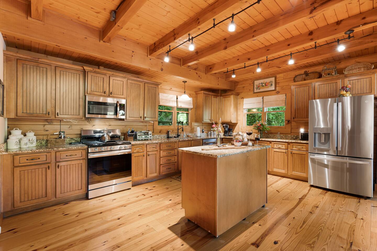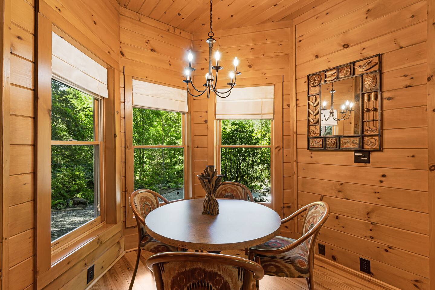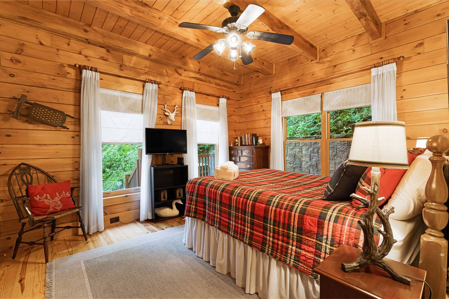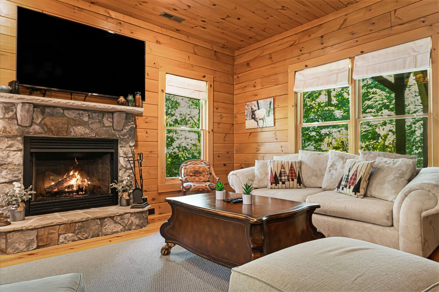 Your slice of Western North Carolina paradise awaits in this spacious, secluded log home, overlooking a creek and tucked into a quiet, gated community. Though you’ll feel a world away from it all, it’s less than five miles to several restaurants and two championship golf courses.