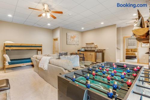 Welcome to Tatanka at Rumbling Bald Resort! Experience luxury and comfort in the heart of nature at Tatanka, your ultimate retreat for a relaxing and memorable getaway. Perfectly designed to accommodate up to 8 guests, this exquisite home offers ample space and luxurious amenities for families, friends, or couples seeking tranquility and adventure. Tatanka is located in the Tatanka neighborhood which is part of Rumbling Bald, Lake Lure's premier resort. The home is located in a gated neighborhood just minutes from the main Rumbling Bald resort. It is not behind the gates at Rumbling Bald. From the moment you step inside, you'll be captivated by Tatanka's warm and inviting ambiance. The open-concept living space is perfect for gathering together, whether you're cooking a meal in the modern kitchen, relaxing by the fireplace, or enjoying a movie night. Each bedroom is a haven of comfort, offering plush bedding and plenty of storage. Step outside to your private deck and soak in the hot tub while taking in the breathtaking views of the surrounding mountains. It's the perfect spot to unwind after a day of exploring the resort's amenities or adventuring in the great outdoors. Tatanka features three spacious bedrooms with a total of three queen beds, a queen lower bunk bed, and a twin upper bunk bed, ensuring a restful night's sleep for everyone. With three and a half beautifully appointed bathrooms, there's plenty of space and privacy for all guests. Enjoy the convenience of a fully equipped kitchen, cozy living area, dining space, and modern amenities such as high-speed Wi-Fi and a smart TV. The expansive deck offers stunning views, outdoor seating, and a grill for BBQ enthusiasts. Plus, as a guest of Rumbling Bald Resort, you'll have access to golf courses, swimming pools, lake activities, a fitness center, hiking and biking trails, and spa services. Tatanka is more than just a place to stay; it's an experience. The combination of luxurious accommodations and the natural beauty of Rumbling Bald Resort ensures a vacation that you'll cherish forever. Whether you're here for a weekend escape or a longer stay, you'll find everything you need for an unforgettable getaway. Book your stay at Tatanka today and discover the perfect blend of luxury, comfort, and nature! PLEASE READ THOROUGHLY We have partnered with Truvi to protect our properties. You will be required to go through a verification process after confirming your booking. You will also be given the choice between paying a refundable deposit ($500) or buying a non-refundable damage waiver ($50) through Truvi. We suggest you buy the damage waiver as this protects you in case you cause accidental damage during a booking.
